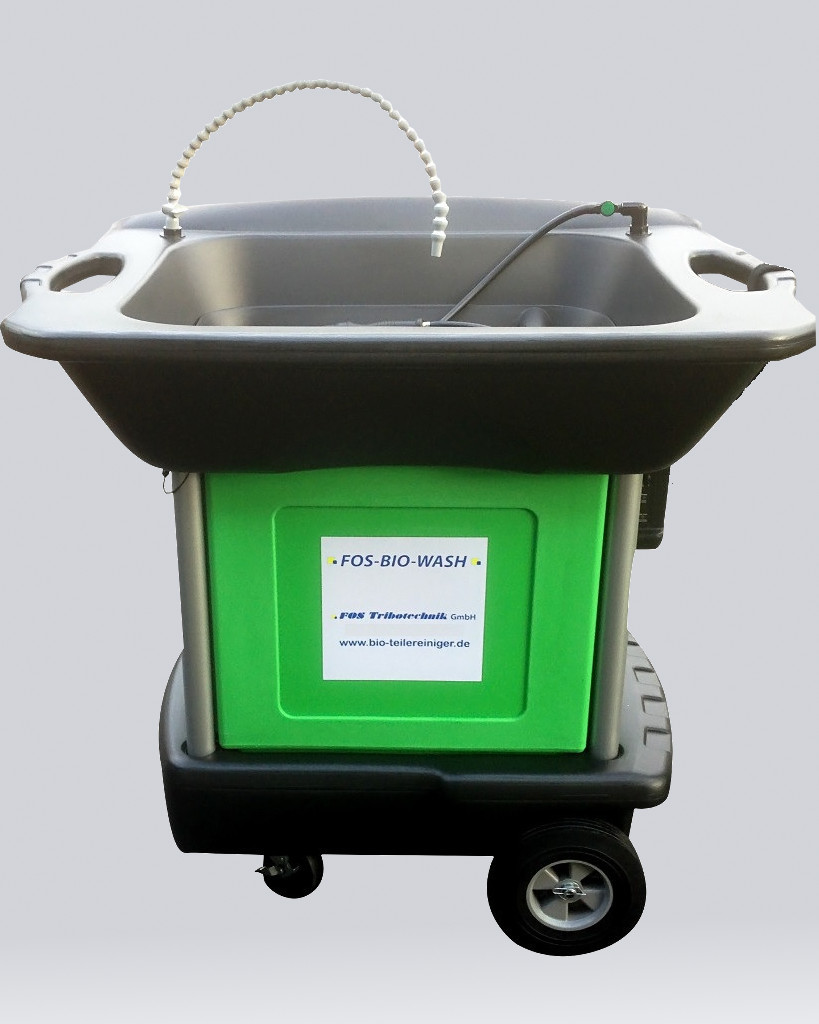 Der FOS-BIO-WASH® Teilereiniger Premium Mobil eignet sich durch seine einfache Handhabung auch für mobile Einsätze z.B. an der Maschine oder bei wechselnden Einsatzorten. Er ist belastbar bis 454 kg und daher auch für größere Teile geeignet. Er wird mit 100 Liter FOS-BIO FLUID® befüllt und ist energieeffizient doppelwandig ausgeführt. Die Filtrierung und der Eintrag der Mikroorganismen erfolgt über den innen einzulegenden FOS-BIO-WASH®-FILTER. Wartungsarbeiten am Gerät sind durch die leicht herausnehmbare komplette Technikeinheit und die abnehmbare Waschwanne schnell und einfach durchzuführen.