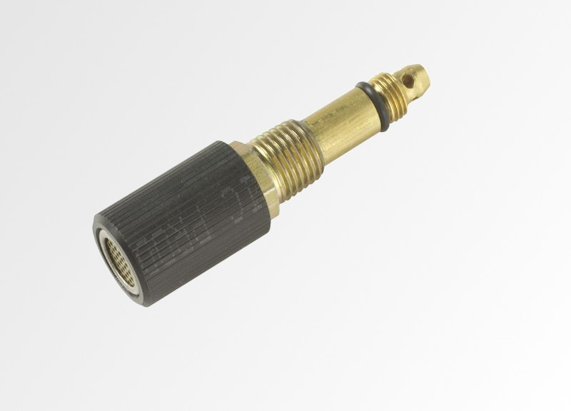 Bei der Montage des Heißendenschalldämpfers wird die im Wirbelrohr am Heißende befindliche Schraube entfernt und durch den Schalldämpfer komplett ersetzt. Der Heißendenschalldämpfer übernimmt dann auch die Funktion der entfernten Schraube. (Durch Drehung wird die Einstellung des Anteils Kaltluft zu Heißluft geregelt)