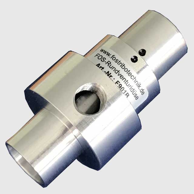 Die FOS Rundventuri Düse F901B ist ideal für die Förderung aller Stoffe, die in einem Luftstrom bewegt werden können, für die Beseitigung von Rauch und Abfall. Da dieser Luftstromverstärker für die Bewegung großer Luftmassen nur eine geringe Druckluftmenge benötigt, ist er außerordentlich wirtschaftlich. FOS Rundventuri Düsen werden sowohl mit, als auch ohne Verrohrung verwendet. FOS Rundventuri Düsen sind hervorragend geeignet für Luftförderung, Trocknung und Kühlung. Die FOS Rundventuri Düse ist stufenlos einstellbar, sie ist werksseitig auf 226 Liter / Minute bei 6,9 Bar Durchflussmenge eingestellt. Diese Einstellung ist durch eine Markierung auf der Düse sichtbar. Die FOS Rundventuri Düse ist aus Aluminium hergestellt.