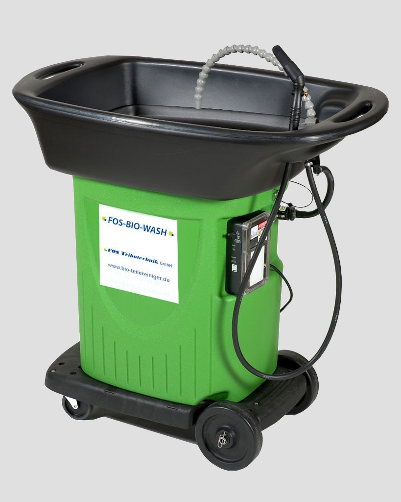 Der FOS-BIO-WASH® Teilereiniger Mobil eignet sich durch seine einfache Handhabung auch für mobile Einsätze z.B. an der Maschine oder bei wechselnden Einsatzorten. Sein Flüssigkeitsbehälter hat eine Kapazität für 60 Liter FOS-BIO-FLUID® und wird auf 40°C temperiert. Die Filtrierung und der Eintrag der Mikroorganismen erfolgt über den innen einzulegenden FOS-BIO-WASH® FILTER. Die maximale Belastbarkeit beträgt 180 kg.