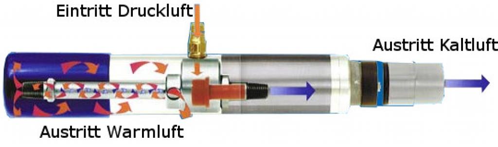 - Kühlung nur mit Druckluft ohne elektrische Komponenten (speziell Ex-Bereiche mit ATEX Zertifikat).