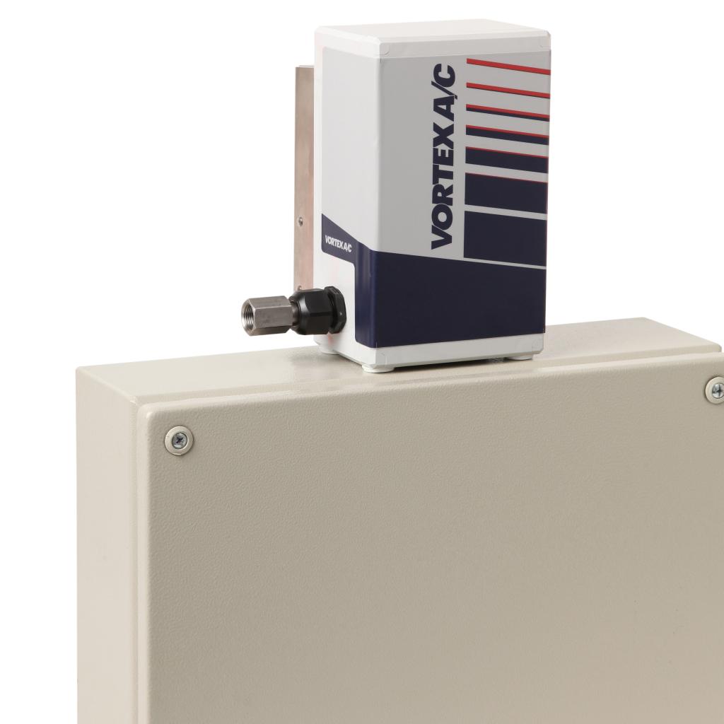 Die Vortex Cooler Modelle Panel Guard und Vortex A/C werden mit einem im Coolergehäuse integrierten mechanischen Thermostat und Ventil geliefert. Das Regelintervall ist 27-32°C. Deshalb ist kein elektrischer Anschluss und kein Druckluftventil erforderlich. Das Modell Vortex A/C ermöglicht eine zuschaltbare kontinuierliche Schaltschrankbelüftung von 84 Ltr./Min. Zusätzlich verfügt es über eine besondere Schalldämpfung (62 dBA). Sie sind auch im Außenbereich einsetzbar.