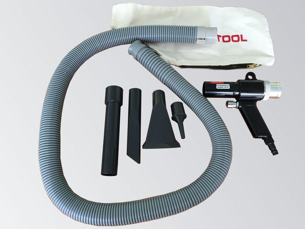 Die Hand-E-VacTM Industrie-Reinigungspistole erlaubt rasches und schnelles Absaugen und Abblasen. Die Hand-E-Vac ist leistungsstark und gleichzeitig wirtschaftlich sowie leicht zu benutzen. Die druckluftbetriebene Pistole kann in wenigen Sekunden durch Umkehren des Düsenaufsatzes von Saugen auf Blasen umgestellt werden. Das komplette Zubehörprogramm ermöglicht den Einsatz für sämtliche industriellen Reinigungsanwendungen. Das Hand-E-Vac ist aus schlagzähem, dauerhaftem Material und hat keine bewegten Teile, die Störungen verursachen können.