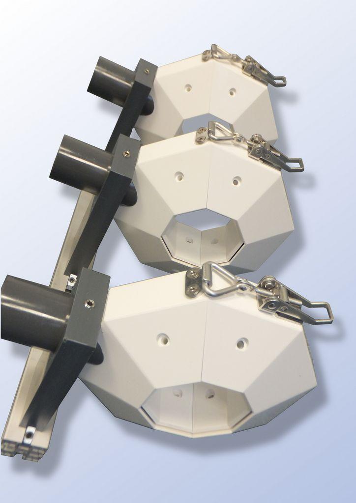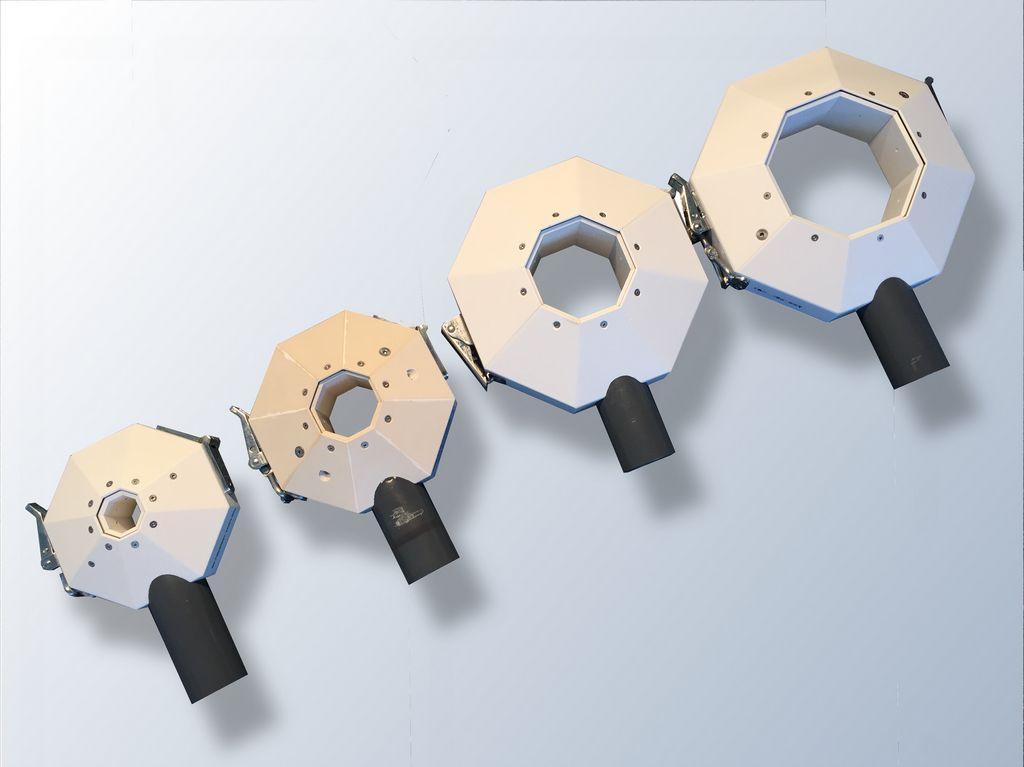 FOS-Ringdüsen werden standardmäßig mit den Innendurchmessern 30, 50, 80 und 120 mm aus lebensmittelechtem, korrosionsresistenten PVC gefertigt (Sonderdurchmesser auf Anfrage).