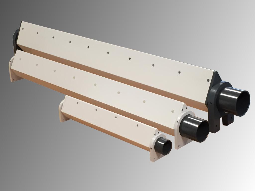 Jet-Düsen-konisch linear angeordnet finden Verwendung falls eine größere Strecke von Düse zum Abblasgut überbrückt werden muss. Sie liefern einen kräftigen Luftstrom über große Distanz. Anschlussdurchmesser 76 mm.