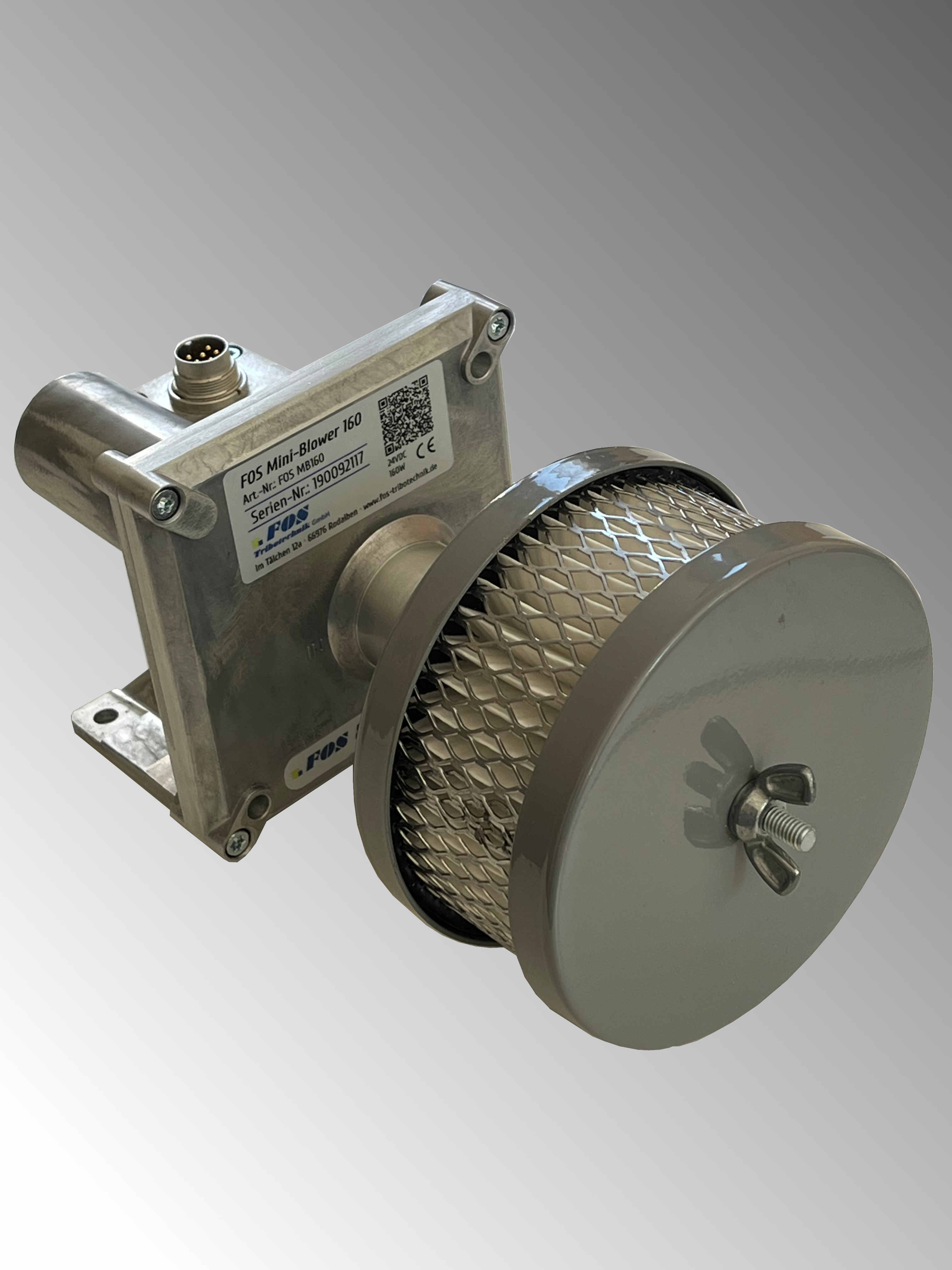 FOS Mini-Blower 160, Anschlußkabel, Schlauchsystem 1 Zoll 2Meter Länge, Ansaugfilter Polyester lebensmittelecht,